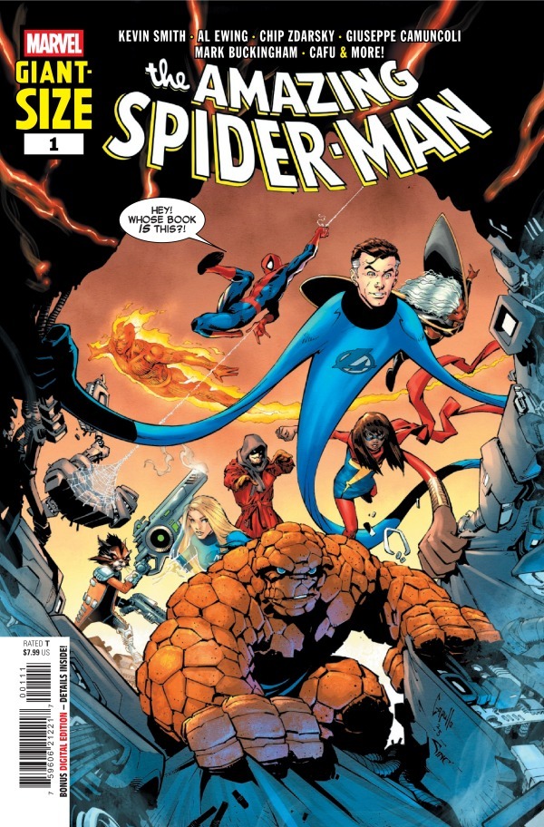 Summer starts with a bang with Giant-Size Amazing Spider-Man #1! Kevin Smith makes his triumphant return to Marvel with a Spider-Man story that will have your heart beating in overdrive and your sides hurting from how much you’re laughing. As if that wasn’t enough, Al Ewing and Mark Buckingham spin a decade-spanning adventure with Spider-Man and some of his best friends! And if that weren’t enough, Chip Zdarsky and CAFU introduce a brand-new character who will play a big role in the future of Marvel Comics! Don’t miss it!
