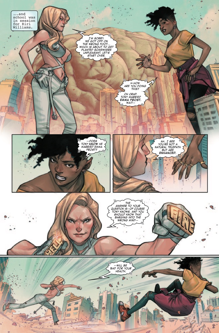 Tony Stark is a genius billionaire playboy philanthropist. His wife is a brilliant, brutal telepath. But neither of them have an answer to the Stark Sentinel problem. To solve that, Tony’s going to have to go to the smartest person he knows: IRONHEART! But with everything on the line, can Tony still trust her, or have the Rings of the Mandarin changed Riri?