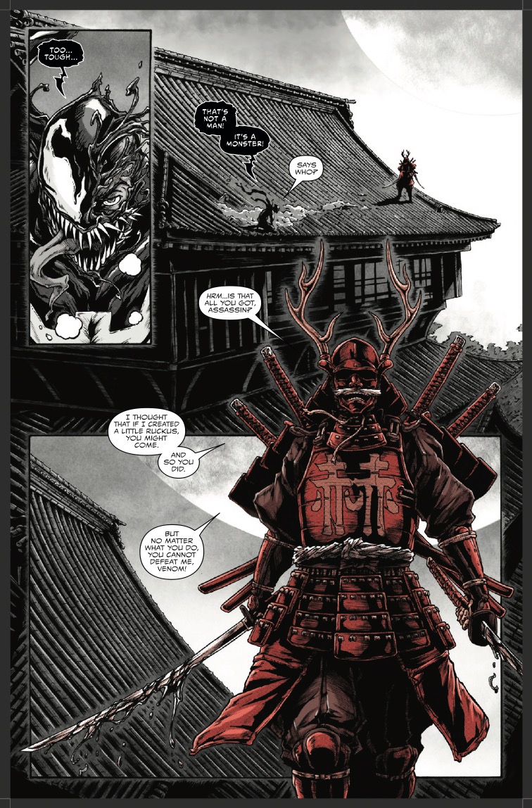 [#item_full_content] Venom: Black White and Blood #3 brings samurai symbiotes, Punisher-Venom, and subway stalking. Ancient Japan meets modern mayhem this Wednesday!